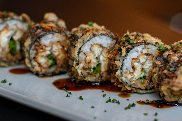 La técnica: prensar, flamear, freír ligeramente, añadir texturas como kataifi crujiente o jugar con arroz negro (arroz “venere/venus”). En Sushisom lo verás en uramakis y especiales con pasta kataifi o arroz negro, un giro muy llamativo y sabroso.