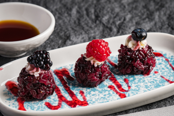 Una tendencia de la comida japonesa moderna es incorporar frutas en formas inesperadas. No es solo por estética: el dulzor ácido del mango, la maracuyá o incluso la fresa realza muy bien pescados grasos como el salmón o el atún.